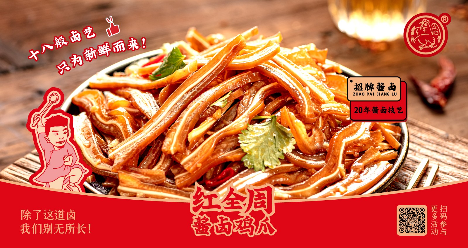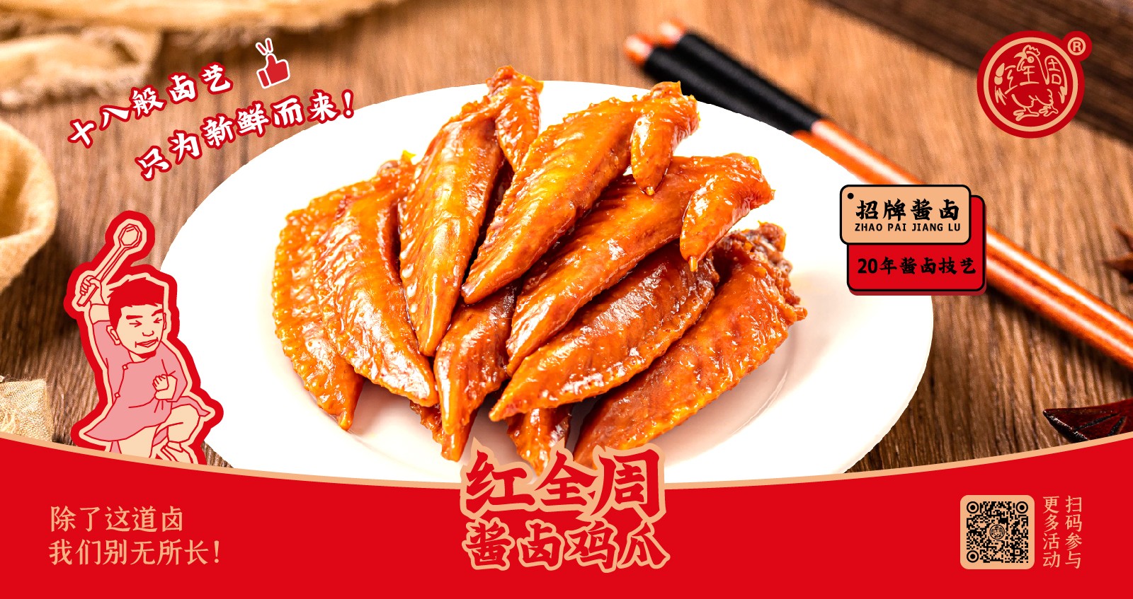 紅全周品牌創(chuàng)立于2012年,其生產(chǎn)總部坐落在以“紅全周雞爪”聞名的福建泉州市南安洪瀨鎮(zhèn),經(jīng)張福來師傅多年研制而成的獨家秘方,獨特的鹵制工藝,以“鮮、香、韌、辣”的特點,贏得廣大食客的交口稱贊。紅全周繼承中華美食傳統(tǒng),堅持以“細(xì)微處見風(fēng)范,毫厘間定乾坤”的服務(wù)準(zhǔn)則,遵循現(xiàn)代健康飲食理念,精選上等食材,致力為消費者提供安全、健康的美食新體驗。
